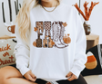 Boots, pumpkins, and just the right touch of cow print—this sweatshirt is fall wrapped up in cozy style. Perfect for pumpkin patch strolls, rodeo nights, or sipping cider under the autumn leaves. Country charm + fall vibes = your new favorite sweatshirt.
